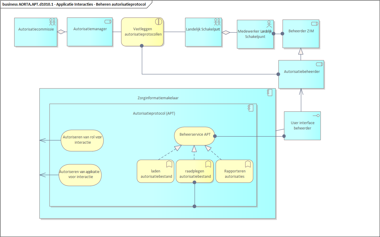 Diagram AORTA.APT.d1010.1 - informatiesysteeminteracties voor het beheer van het autorisatieprotocol