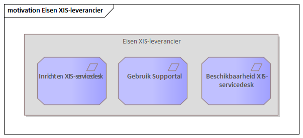 Eis: De XIS-leverancier moet een 'XIS-servicedesk' inrichten die als aanspreekpunt fungeert voor problemen m.b.t. het XIS. De XIS-servicedesk moet onderdeel uitmaken van het ketenbeheerproces.