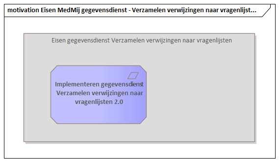 Eis: Gegevensdienst Verzamelen verwijzingen naar vragenlijsten 2.0 met gegevensdienstid 59, dient ondersteund te worden door het bronsysteem. Toelichting bij eis: De specificaties van de te implementeren interfaces zijn te vinden via