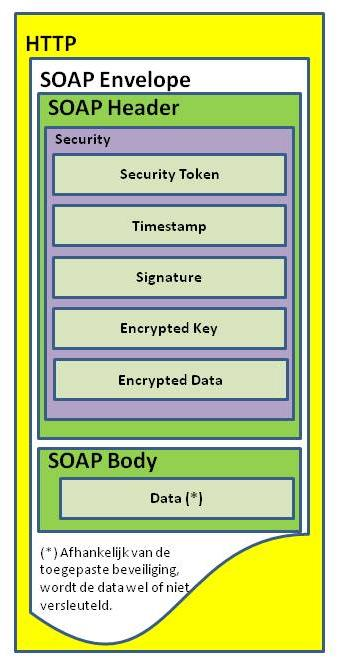 WS-Security voegt zijn gegevens toe aan de SOAP header door een <Security> element te definiëren waarbinnen een aantal beveiligingsaspecten worden geregeld, zoals: