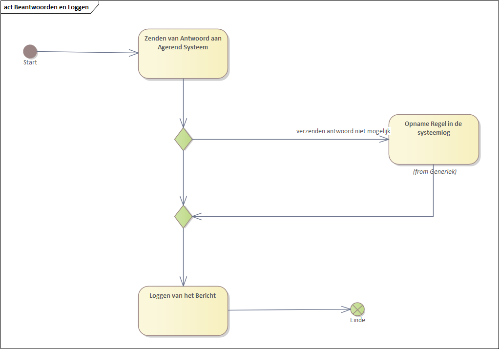 Na de inhoudelijke afhandeling (hetzij volledig door de ZIM of in samenwerking met reagerende systemen) wordt het uiteindelijke antwoord aan het initiërend systeem gestuurd (zie diagram AORTA.ZIM.d1070).